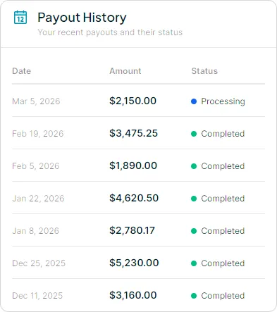 Payments go directly to your Stripe account. ProfitJam never touches your money.